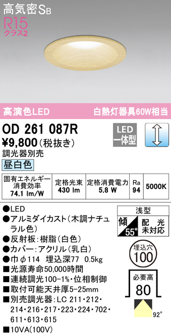 ODELIC ¥ª¡¼¥Ç¥ê¥Ã¥¯ ¥À¥¦¥ó¥é¥¤¥È OD261087R