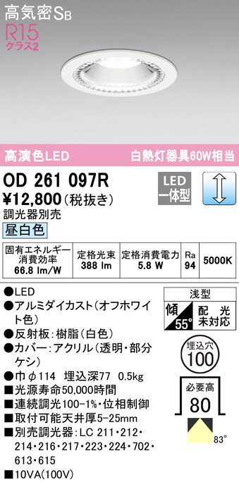 ODELIC ¥ª¡¼¥Ç¥ê¥Ã¥¯ ¥À¥¦¥ó¥é¥¤¥È OD261097R