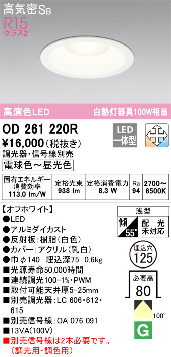 ODELIC ¥ª¡¼¥Ç¥ê¥Ã¥¯ ¥À¥¦¥ó¥é¥¤¥È OD261220R