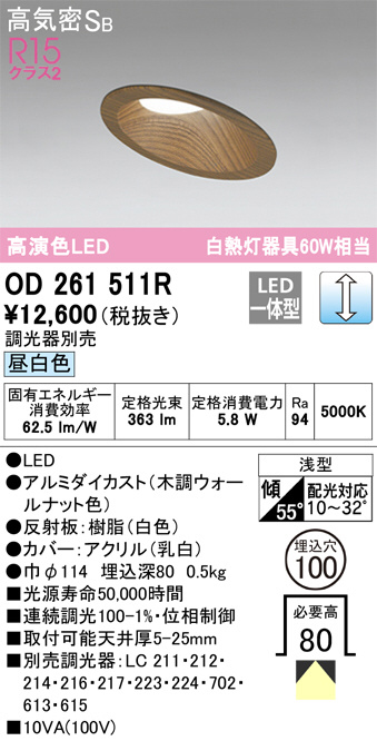 ODELIC ¥ª¡¼¥Ç¥ê¥Ã¥¯ ¥À¥¦¥ó¥é¥¤¥È OD261511R