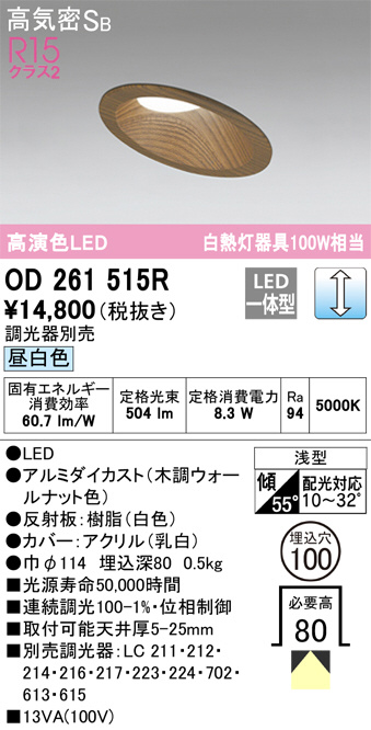 ODELIC ¥ª¡¼¥Ç¥ê¥Ã¥¯ ¥À¥¦¥ó¥é¥¤¥È OD261515R