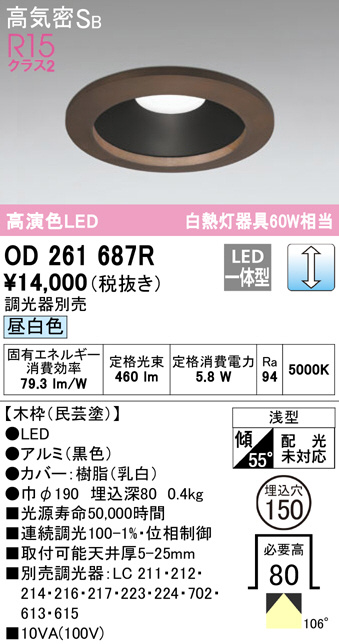 ODELIC ¥ª¡¼¥Ç¥ê¥Ã¥¯ ¥À¥¦¥ó¥é¥¤¥È OD261687R