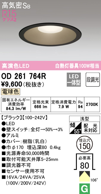 ODELIC ¥ª¡¼¥Ç¥ê¥Ã¥¯ ¥À¥¦¥ó¥é¥¤¥È OD261764R