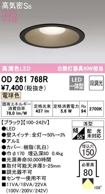 ODELIC ¥ª¡¼¥Ç¥ê¥Ã¥¯ ¥À¥¦¥ó¥é¥¤¥È OD261768R