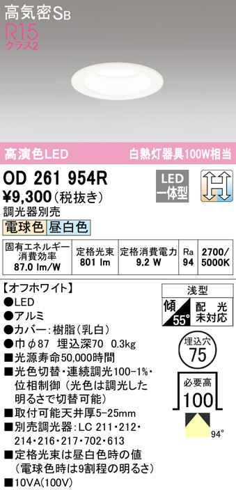 ODELIC ¥ª¡¼¥Ç¥ê¥Ã¥¯ ¥À¥¦¥ó¥é¥¤¥È OD261954R
