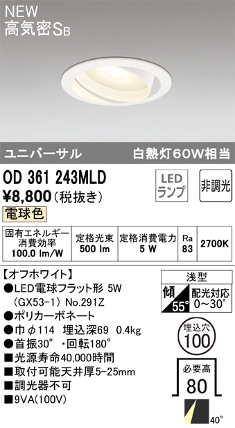 ODELIC ¥ª¡¼¥Ç¥ê¥Ã¥¯ ¥À¥¦¥ó¥é¥¤¥È OD361243MLD