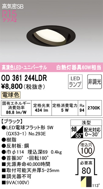 ODELIC ¥ª¡¼¥Ç¥ê¥Ã¥¯ ¥À¥¦¥ó¥é¥¤¥È OD361244LDR