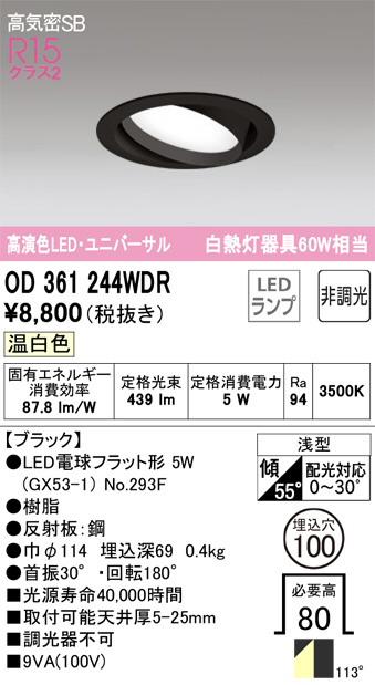 ODELIC ¥ª¡¼¥Ç¥ê¥Ã¥¯ ¥À¥¦¥ó¥é¥¤¥È OD361244WDR