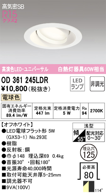 ODELIC ¥ª¡¼¥Ç¥ê¥Ã¥¯ ¥À¥¦¥ó¥é¥¤¥È OD361245LDR