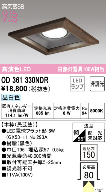 ODELIC ¥ª¡¼¥Ç¥ê¥Ã¥¯ ¥À¥¦¥ó¥é¥¤¥È OD361330NDR