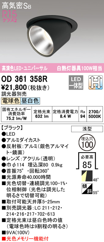 ODELIC ¥ª¡¼¥Ç¥ê¥Ã¥¯ ¥À¥¦¥ó¥é¥¤¥È OD361358R