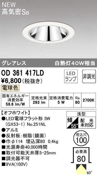 ODELIC ¥ª¡¼¥Ç¥ê¥Ã¥¯ ¥À¥¦¥ó¥é¥¤¥È OD361417LD