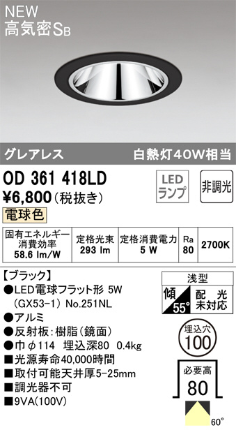 ODELIC ¥ª¡¼¥Ç¥ê¥Ã¥¯ ¥À¥¦¥ó¥é¥¤¥È OD361418LD