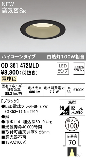 ODELIC ¥ª¡¼¥Ç¥ê¥Ã¥¯ ¥À¥¦¥ó¥é¥¤¥È OD361472MLD