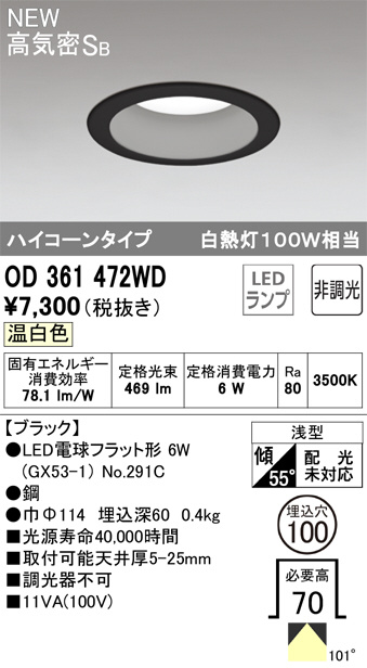 ODELIC ¥ª¡¼¥Ç¥ê¥Ã¥¯ ¥À¥¦¥ó¥é¥¤¥È OD361472WD