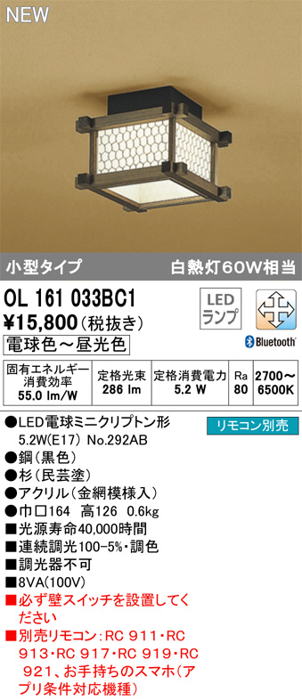 ODELIC ¥ª¡¼¥Ç¥ê¥Ã¥¯ ¾®·¿¥·¡¼¥ê¥ó¥°¥é¥¤¥È OL161033BC1