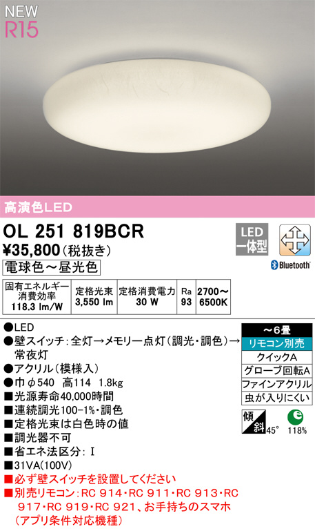 ODELIC ¥ª¡¼¥Ç¥ê¥Ã¥¯ ¥·¡¼¥ê¥ó¥°¥é¥¤¥È OL251819BCR