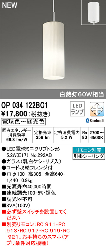 ODELIC ¥ª¡¼¥Ç¥ê¥Ã¥¯ ¥Ú¥ó¥À¥ó¥È¥é¥¤¥È OP034122BC1