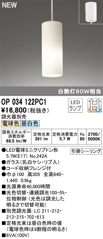 ODELIC ¥ª¡¼¥Ç¥ê¥Ã¥¯ ¥Ú¥ó¥À¥ó¥È¥é¥¤¥È OP034122PC1