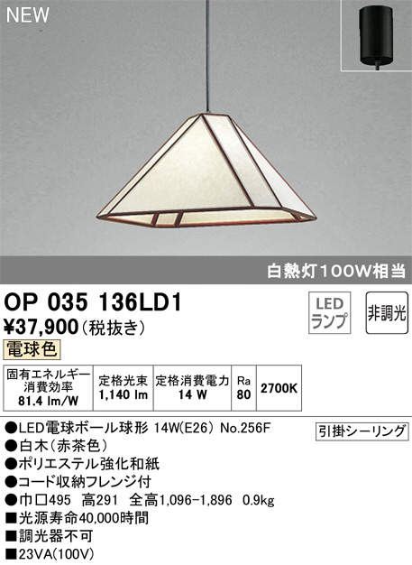 ODELIC ¥ª¡¼¥Ç¥ê¥Ã¥¯ ¥Ú¥ó¥À¥ó¥È¥é¥¤¥È OP035136LD1