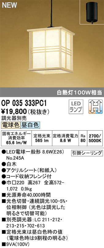 ODELIC ¥ª¡¼¥Ç¥ê¥Ã¥¯ ¥Ú¥ó¥À¥ó¥È¥é¥¤¥È OP035333PC1