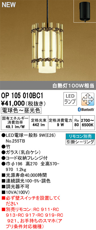 ODELIC ¥ª¡¼¥Ç¥ê¥Ã¥¯ ¥Ú¥ó¥À¥ó¥È¥é¥¤¥È OP105010BC1