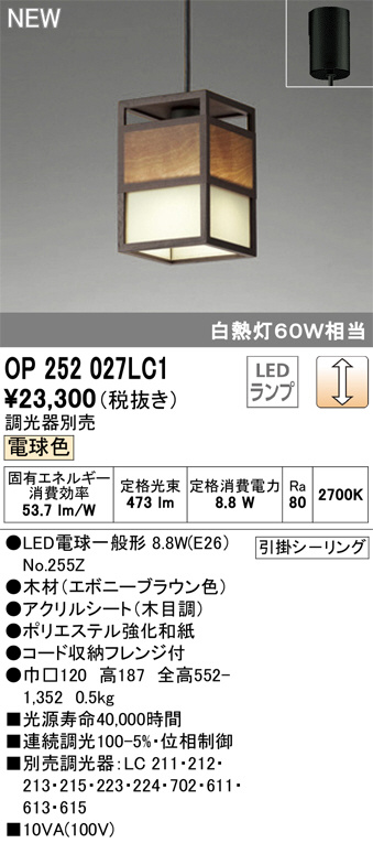 ODELIC ¥ª¡¼¥Ç¥ê¥Ã¥¯ ¥Ú¥ó¥À¥ó¥È¥é¥¤¥È OP252027LC1