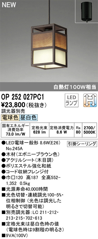 ODELIC ¥ª¡¼¥Ç¥ê¥Ã¥¯ ¥Ú¥ó¥À¥ó¥È¥é¥¤¥È OP252027PC1