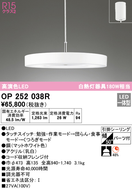 ODELIC ¥ª¡¼¥Ç¥ê¥Ã¥¯ ¥Ú¥ó¥À¥ó¥È¥é¥¤¥È OP252038R