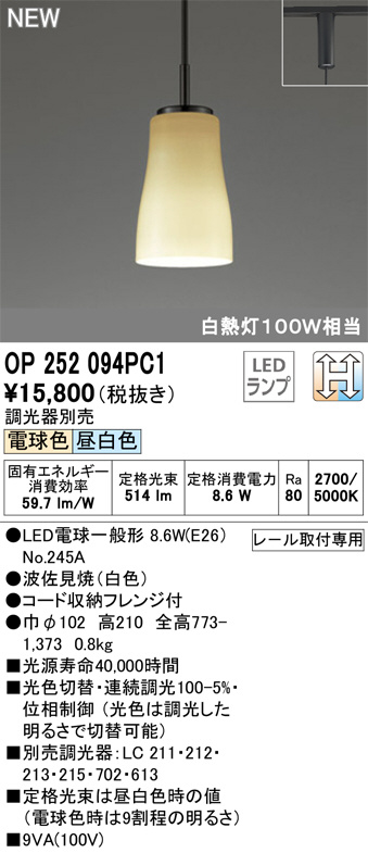 ODELIC ¥ª¡¼¥Ç¥ê¥Ã¥¯ ¥Ú¥ó¥À¥ó¥È¥é¥¤¥È OP252094PC1
