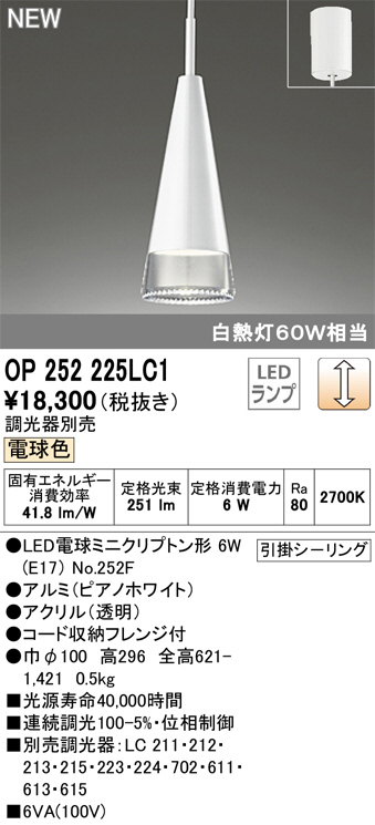 ODELIC ¥ª¡¼¥Ç¥ê¥Ã¥¯ ¥Ú¥ó¥À¥ó¥È¥é¥¤¥È OP252225LC1