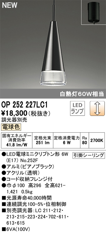 ODELIC ¥ª¡¼¥Ç¥ê¥Ã¥¯ ¥Ú¥ó¥À¥ó¥È¥é¥¤¥È OP252227LC1