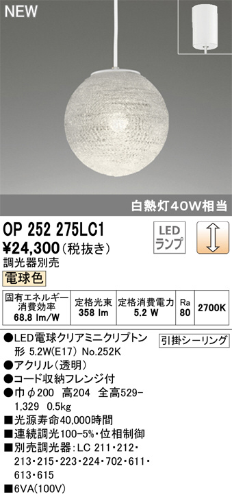 ODELIC ¥ª¡¼¥Ç¥ê¥Ã¥¯ ¥Ú¥ó¥À¥ó¥È¥é¥¤¥È OP252275LC1