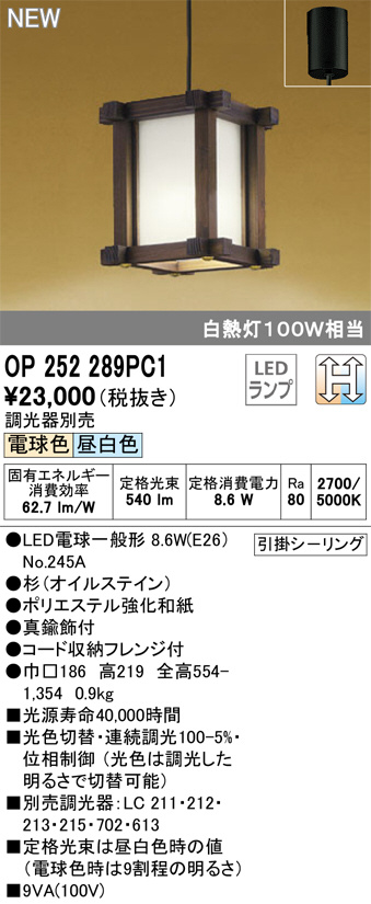 ODELIC ¥ª¡¼¥Ç¥ê¥Ã¥¯ ¥Ú¥ó¥À¥ó¥È¥é¥¤¥È OP252289PC1