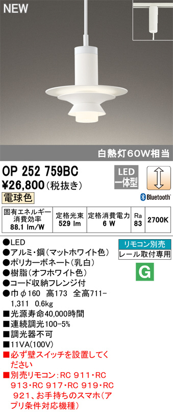 ODELIC ¥ª¡¼¥Ç¥ê¥Ã¥¯ ¥Ú¥ó¥À¥ó¥È¥é¥¤¥È OP252759BC