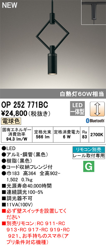 ODELIC ¥ª¡¼¥Ç¥ê¥Ã¥¯ ¥Ú¥ó¥À¥ó¥È¥é¥¤¥È OP252771BC