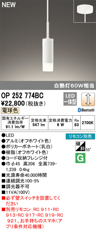 ODELIC ¥ª¡¼¥Ç¥ê¥Ã¥¯ ¥Ú¥ó¥À¥ó¥È¥é¥¤¥È OP252774BC
