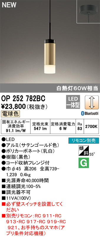 ODELIC ¥ª¡¼¥Ç¥ê¥Ã¥¯ ¥Ú¥ó¥À¥ó¥È¥é¥¤¥È OP252782BC