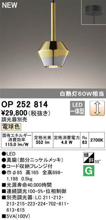 ODELIC ¥ª¡¼¥Ç¥ê¥Ã¥¯ ¥Ú¥ó¥À¥ó¥È¥é¥¤¥È OP252814