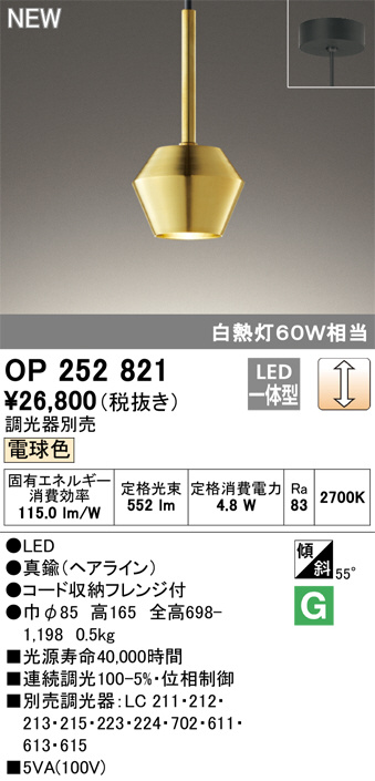 ODELIC ¥ª¡¼¥Ç¥ê¥Ã¥¯ ¥Ú¥ó¥À¥ó¥È¥é¥¤¥È OP252821