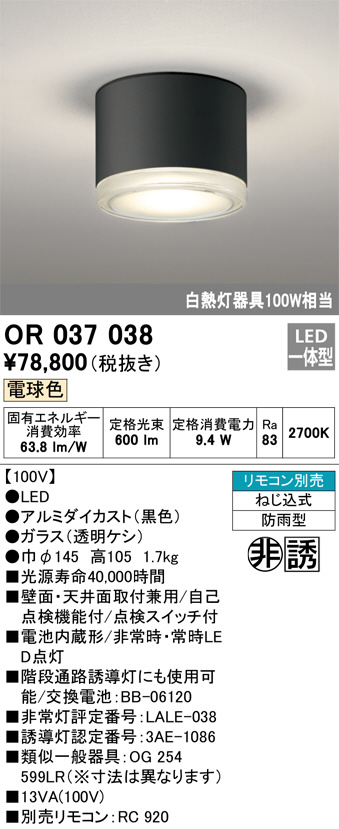 ODELIC ¥ª¡¼¥Ç¥ê¥Ã¥¯ Èó¾ïÅô¡¦Í¶Æ³Åô OR037038