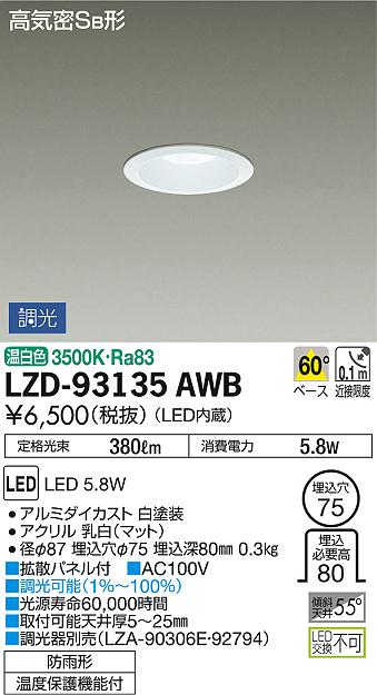 DAIKO Âç¸÷Åŵ¡ ¥À¥¦¥ó¥é¥¤¥È(¸®²¼·óÍÑ) LZD-93135AWB