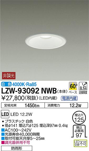 DAIKO Âç¸÷Åŵ¡ ¥¢¥¦¥È¥É¥¢¥À¥¦¥ó¥é¥¤¥È LZW-93092NWB