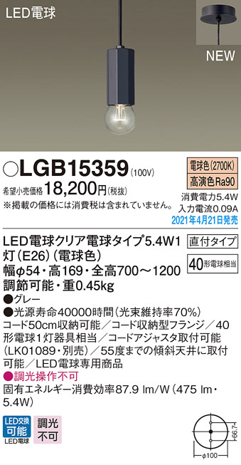 Panasonic ¥Ú¥ó¥À¥ó¥È LGB15359