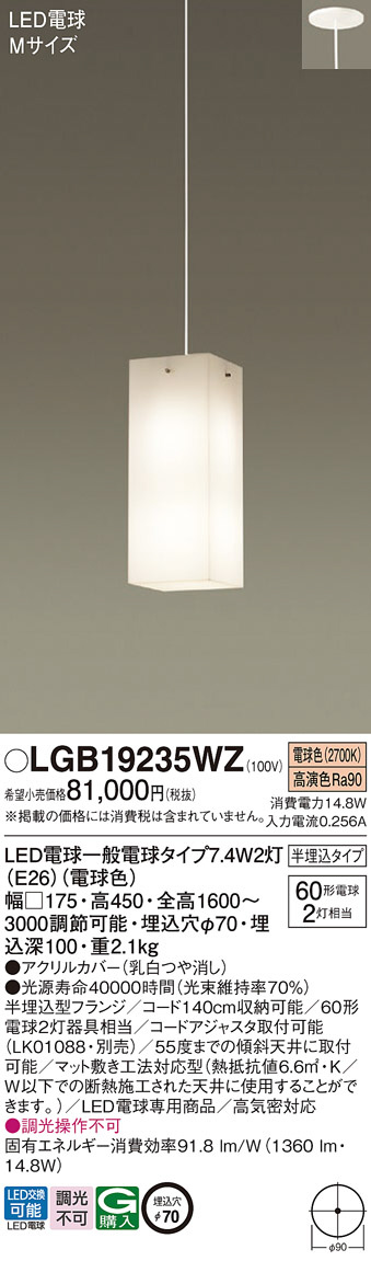 Panasonic ¥Ú¥ó¥À¥ó¥È LGB19235WZ