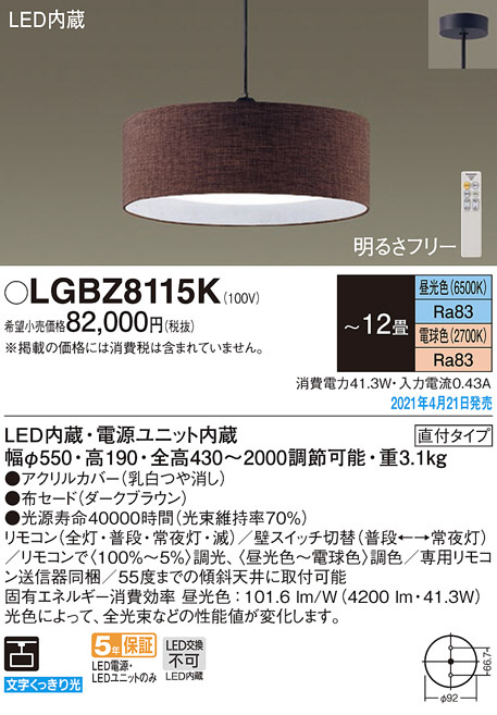 Panasonic ¥Ú¥ó¥À¥ó¥È LGBZ8115K