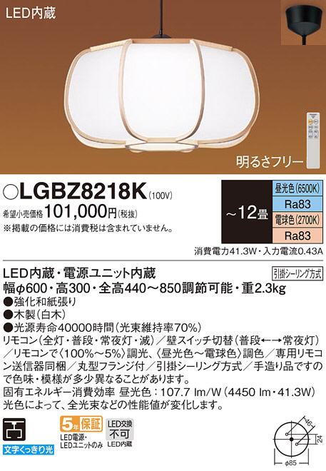 Panasonic ¥Ú¥ó¥À¥ó¥È LGBZ8218K