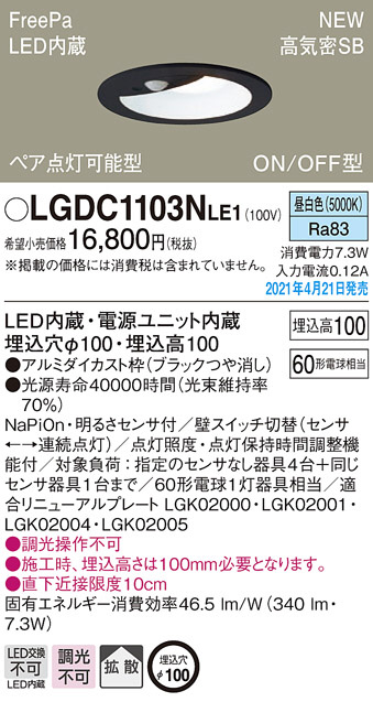 Panasonic ¥À¥¦¥ó¥é¥¤¥È LGDC1103NLE1
