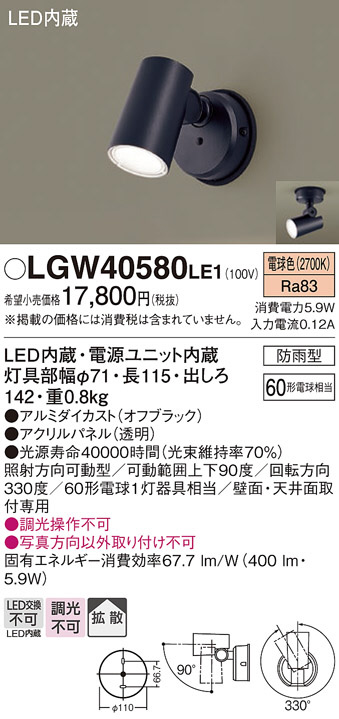 Panasonic ¥¨¥¯¥¹¥Æ¥ê¥¢¥¹¥Ý¥Ã¥È¥é¥¤¥È LGW40580LE1
