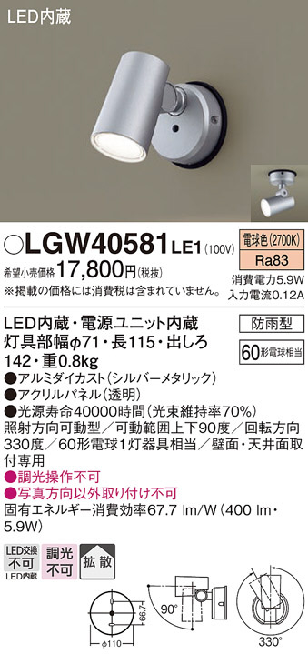 Panasonic ¥¨¥¯¥¹¥Æ¥ê¥¢¥¹¥Ý¥Ã¥È¥é¥¤¥È LGW40581LE1